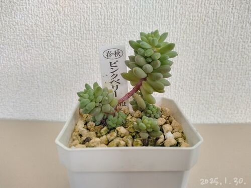 久しぶりにホームセンターに行ってきました。 今回もほぼ値下げ品の多肉が仲間入りです。 そのうち、 初めての多肉植物は1個。 それはこちら、 ピンクベリー ミニ鉢なので小さいです。 徒長しているのでこれから大きくできるか不安な多肉。 名前にピンクと…