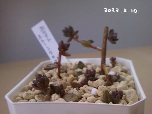 どんな姿が正解なのか想像つかなかった徒長多肉のホワイトストーンクロプ。 2022年9月に仲間入りした時の姿です。 ヒョロヒョロでたよりなかったのですが、カットして挿したり葉挿さしをして育てていました。 大きな変化はないように見えますが現在の姿です…