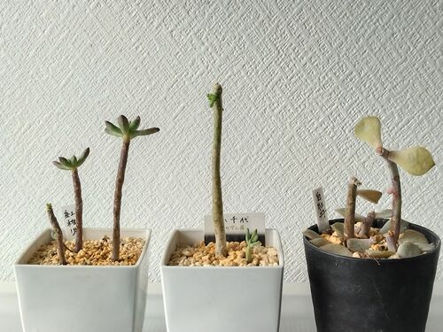 今日も今日とて マイペースでやっていきます気になる多肉植物。 棒多肉が並んでますが、よく見ると新芽があちこちにできてるんです。 紅稚児 2025年1月5日 あっちこち姿をみせてる新芽たち。 もう、棒なんて言わせません! ちゃんと大きくなってくれるかな…