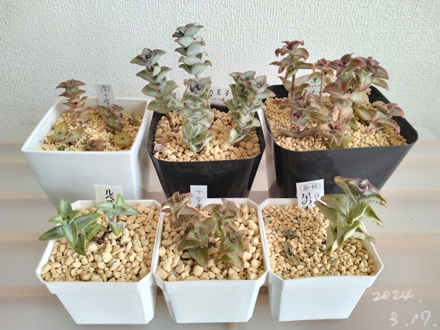 月花美人(左上)秋麗(右上)は冬でも元気、それ以外でも寒さに強い多肉は小さくてもしっかりしています。